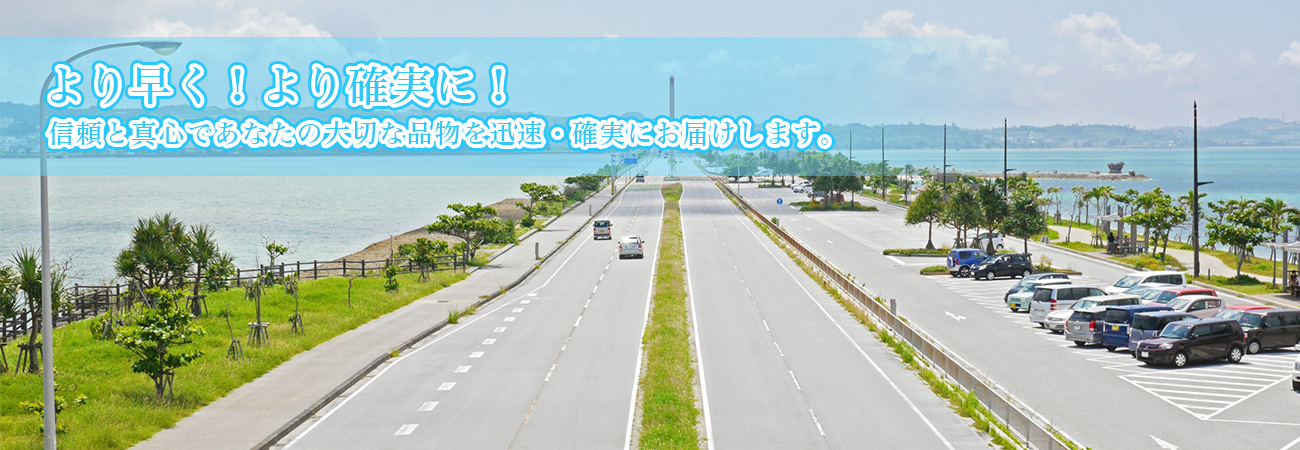 琉球託送では、お客様からお預かりしたお荷物より早く、安全・確実に お届けする事を一番に考え、お客様に安心をお届出来るよう、日々お客様の声に耳を傾けております。